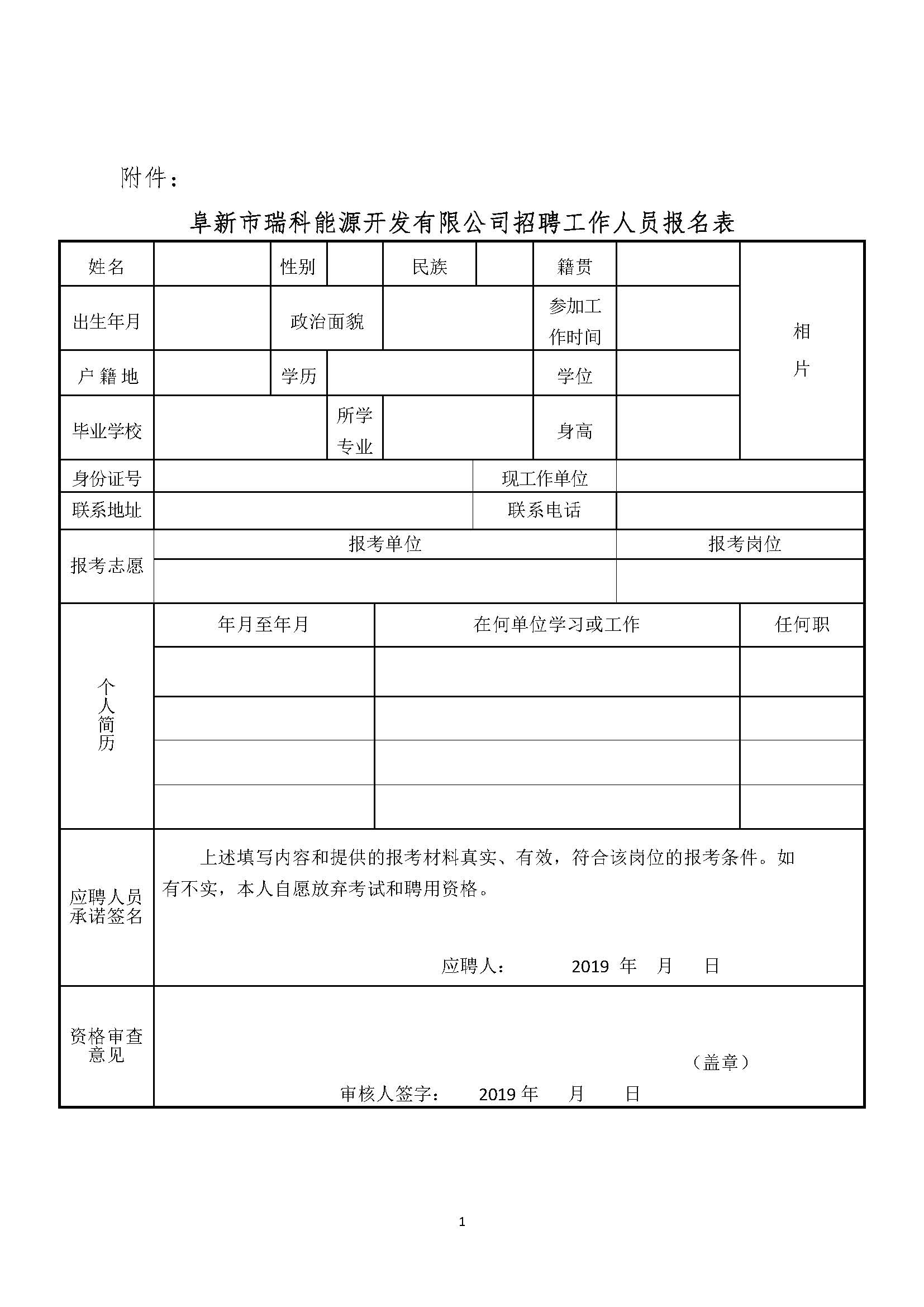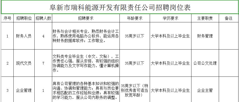 原标题:阜新市瑞科能源开发有限责任公司招聘公告