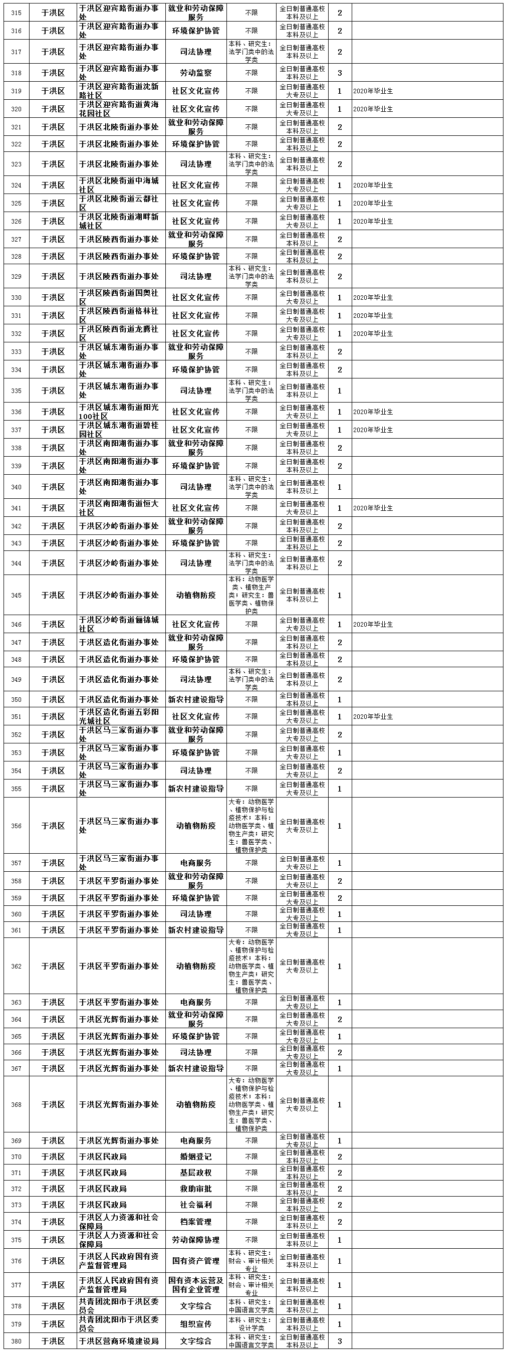 根据《沈阳市人力资源和社会保障局 沈阳市财政局 沈阳市人才工作办公室关于印发〈沈阳市高校毕业生基层公共岗位服务计划实施细则〉的通知》(沈人社发〔2018〕32号)要求,面向社会公开招录高校毕业生基层公共岗位服务计划人员1466人,现将有关事项公告如下: