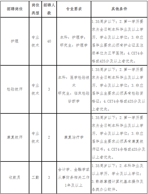 为了满足医院用人需求,经学校批准,现面向社会公开招聘编外用工人员,具体情况公告如下: