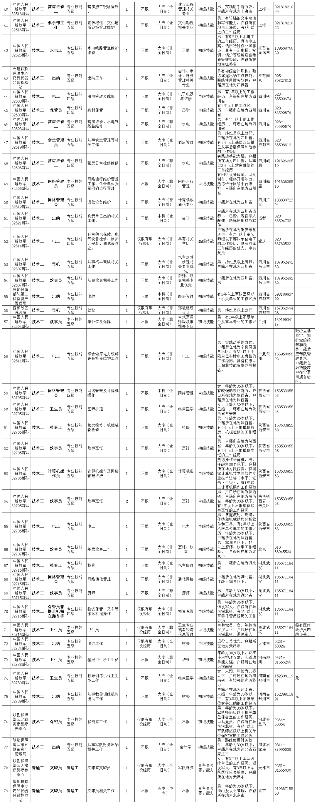 2020联勤保障部队面向社会公开招考81名专业技能岗位文职人员公告