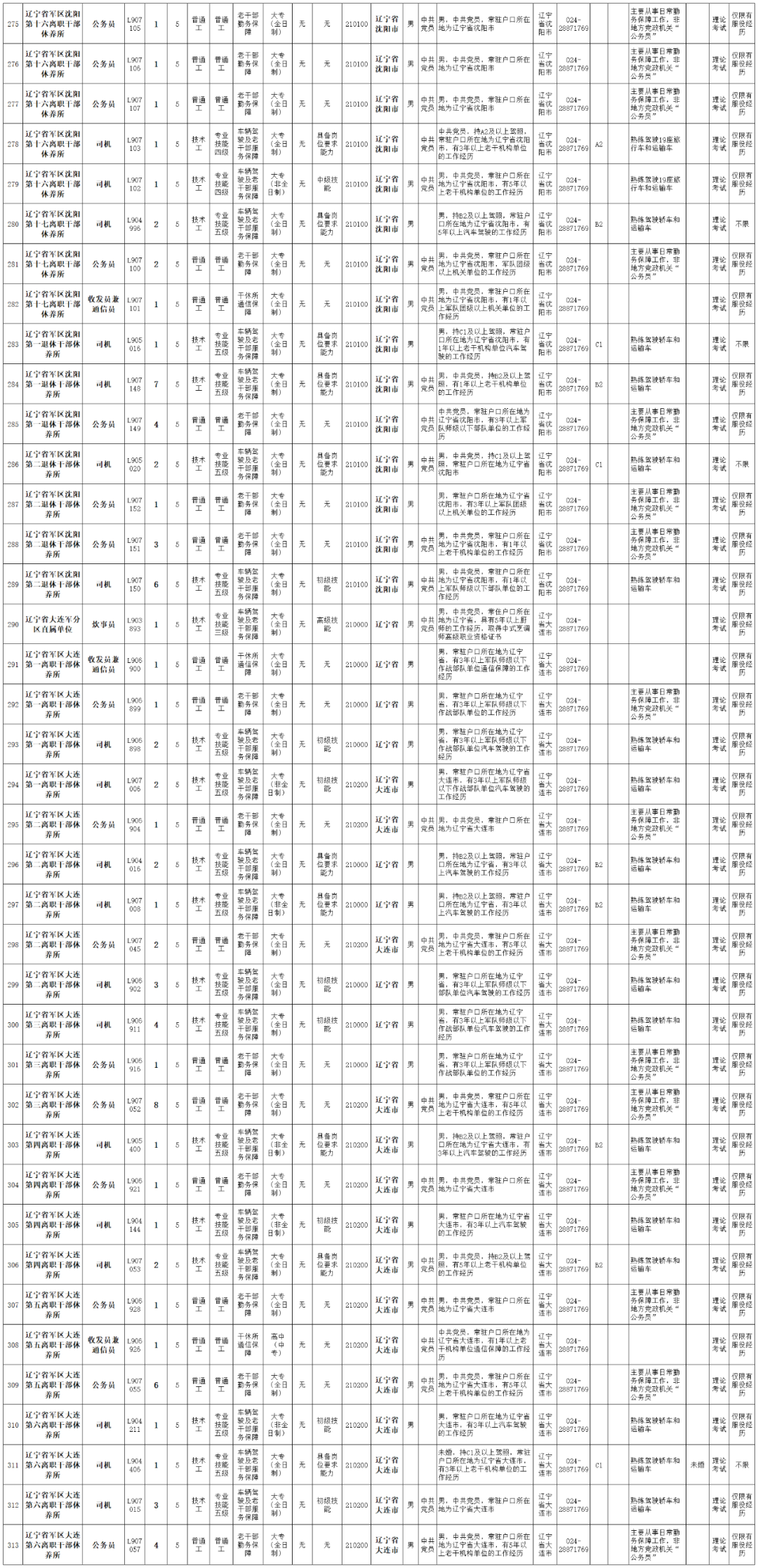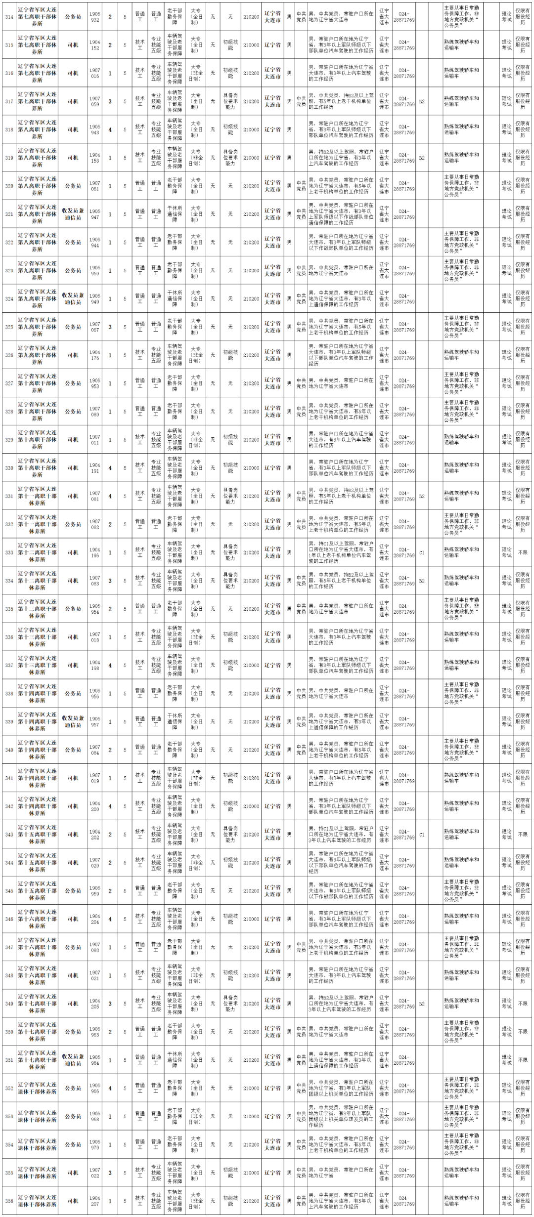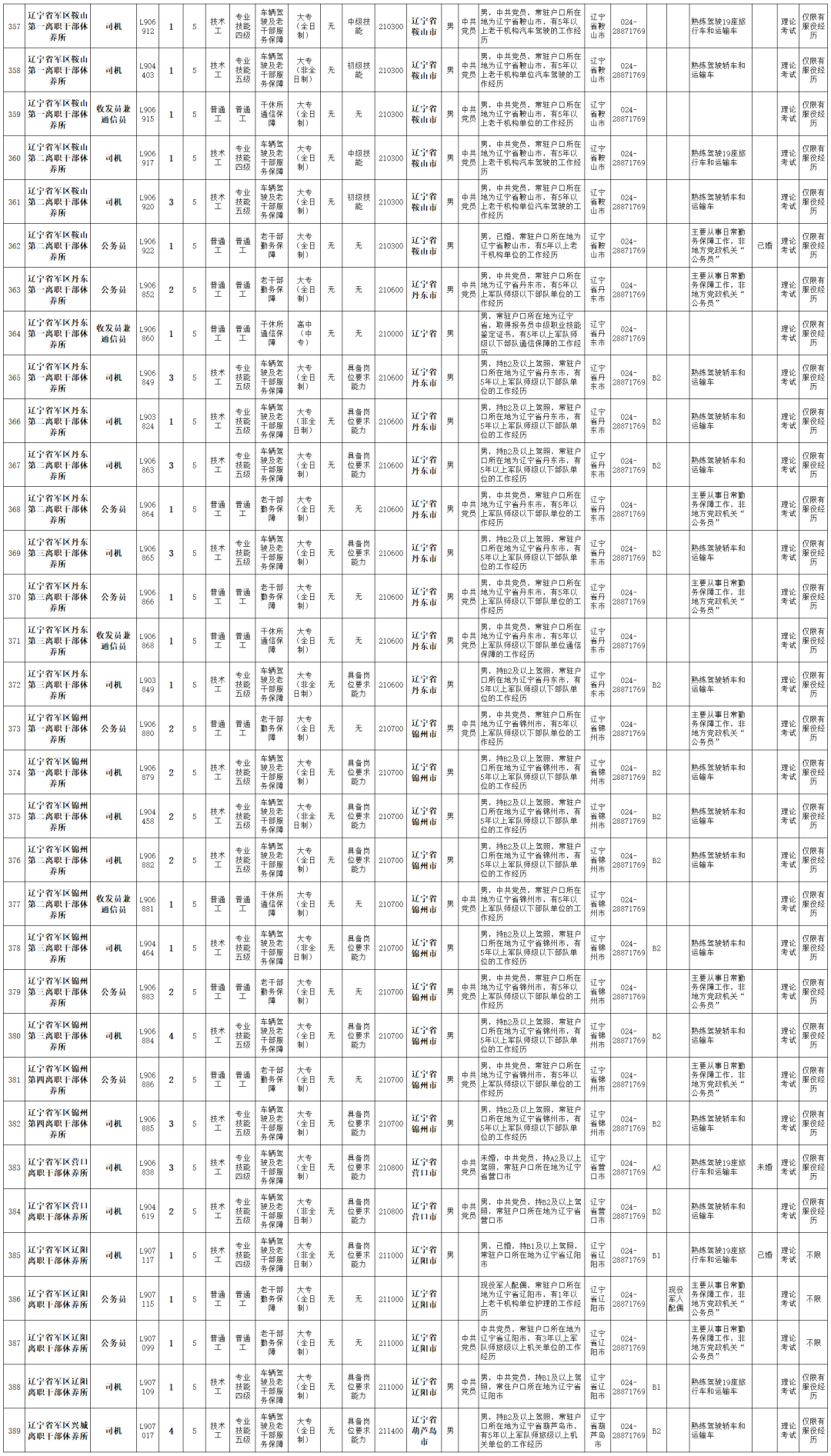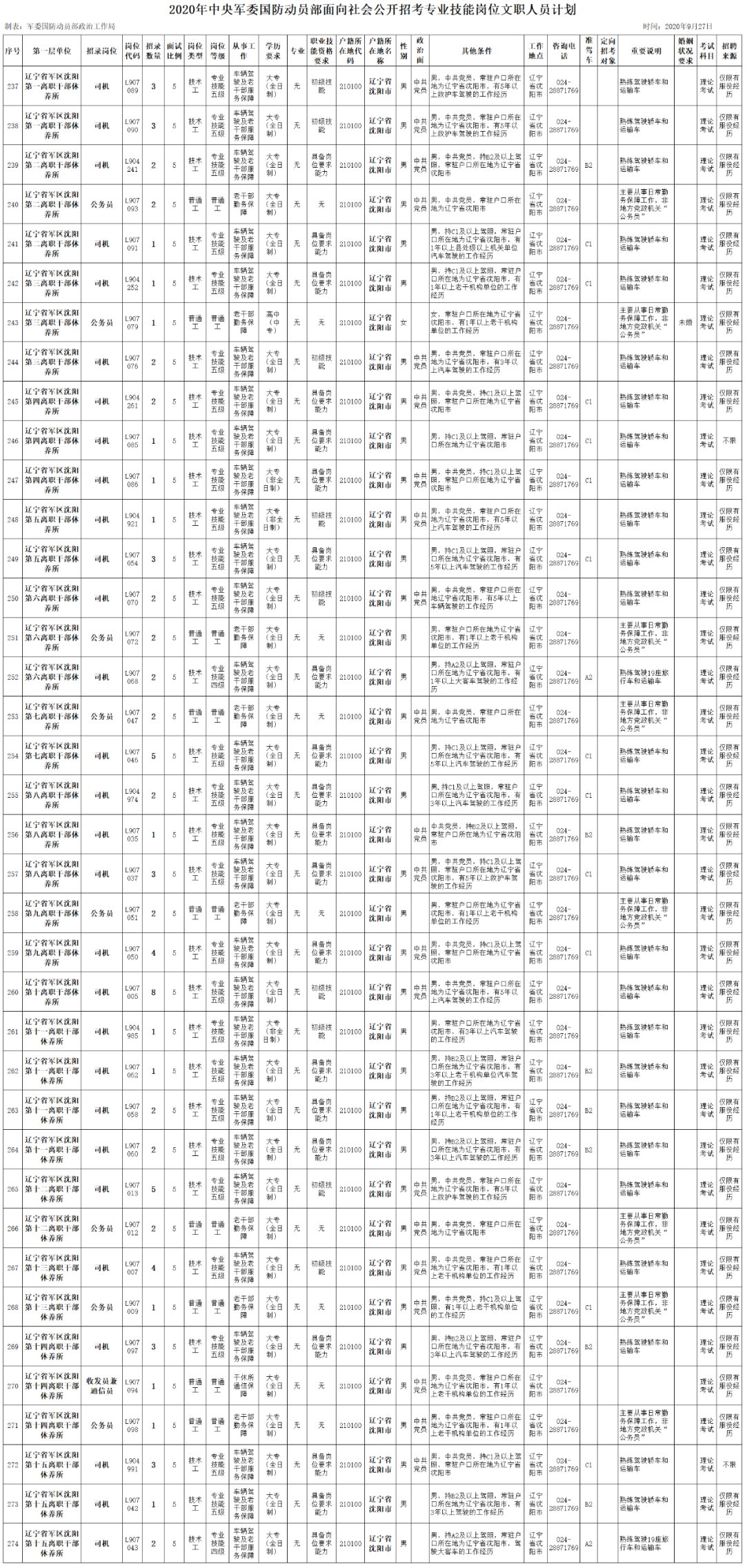 军委国防动员部2020年面向社会公开招考专业技能岗位文职人员计划(辽宁地区岗位信息见下图)