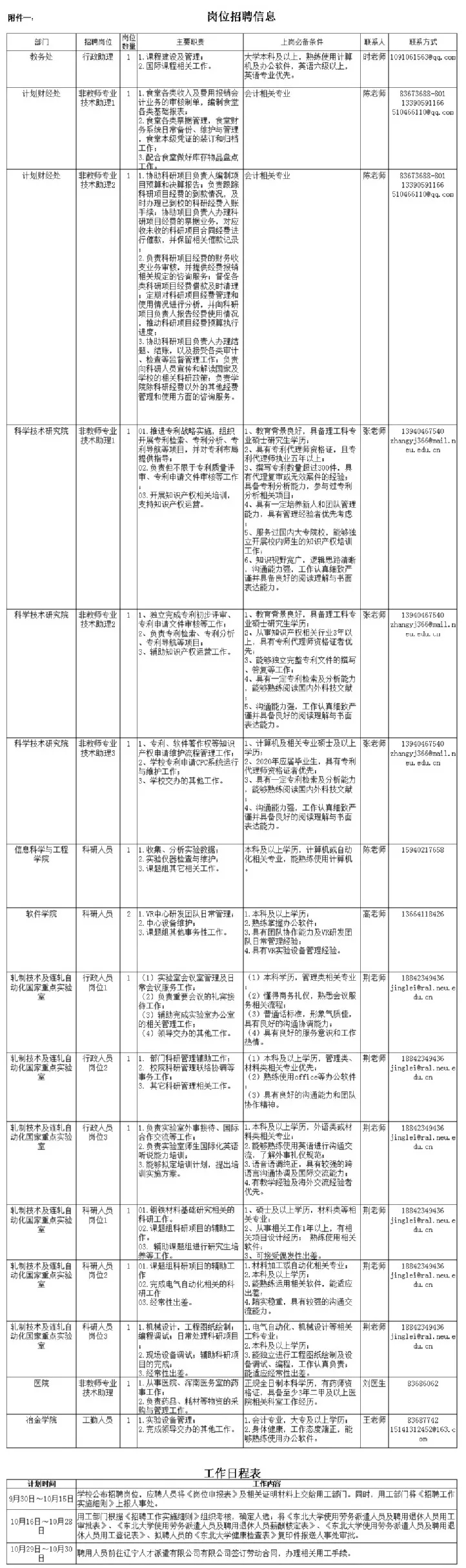 (一)相应岗位具体情况、招聘工作日程及联系人见附件一。(见下图)