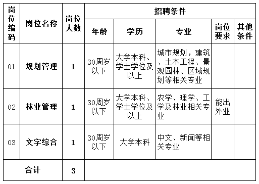 (四)城市规划、林业、中文等相关专业(详情查看公告下方职位表)(见文中最下方);