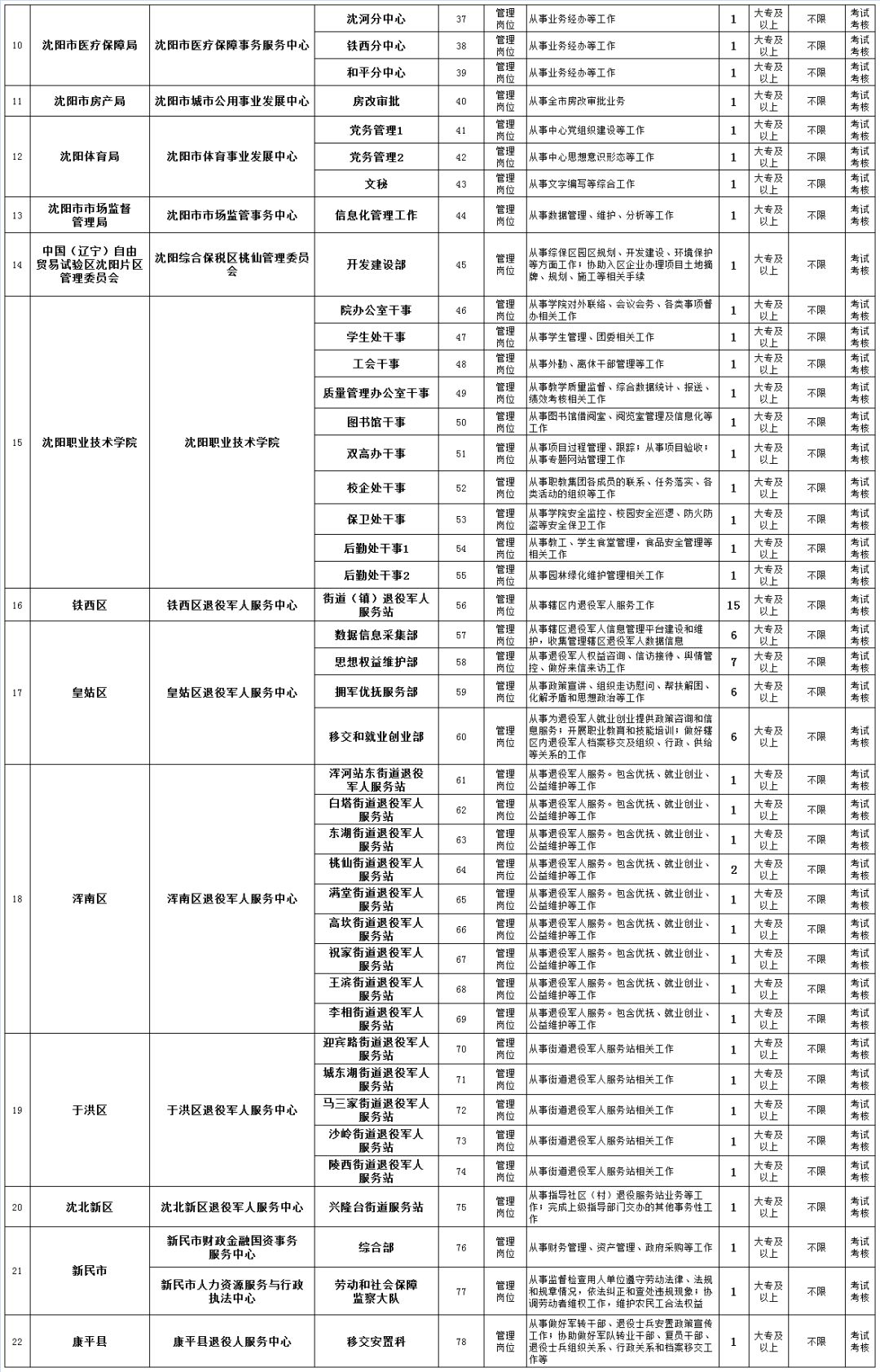 沈阳事业单位定向招聘2020符合政府安排工作条件退役士兵121人