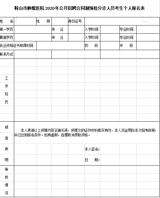 在鞍山市肿瘤医院订阅号(微信)及相关主管部门招聘专栏上发布招聘公告。