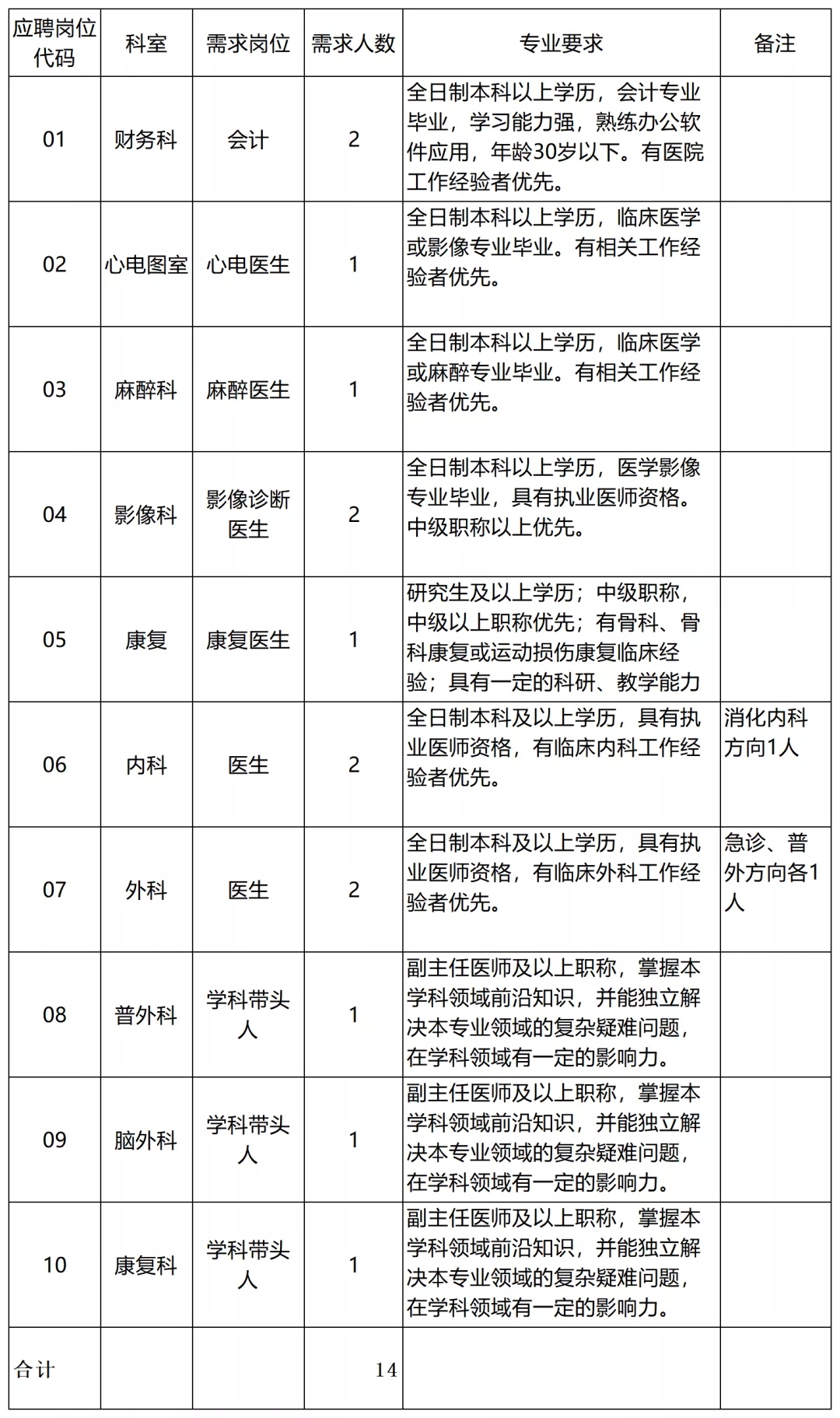 因医院业务发展需要,拟面向社会招聘专业技术人员,现将有关事项公告如下: