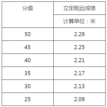 立定跳远评分表: