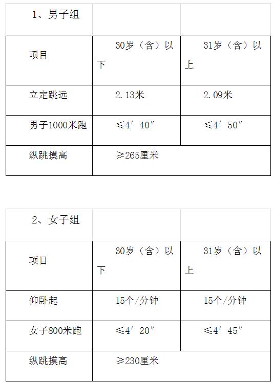 未达到合格成绩的,不予聘用。体能测试时间、地点另行通知。体能测试项目不进行复测和递补。