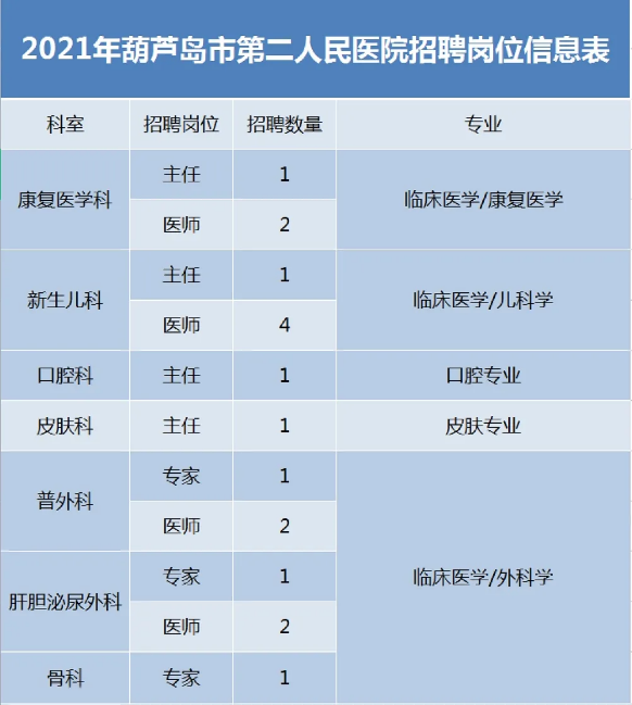 原标题:公告|葫芦岛市第二人民医院招聘各学科主任、专家、临床医师公告!