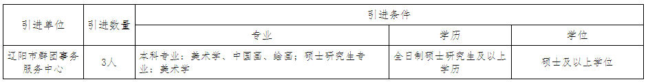 面向全国为辽阳市群团事务服务中心引进专业技术人员3名。