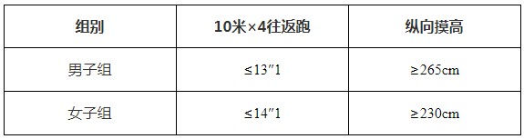 5.体能测试:所有参加报名人员需先通过体能测试后方可进行报名,体能测试标准为: