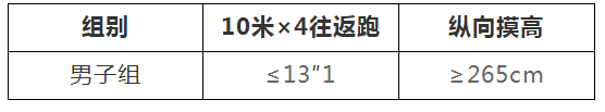 5.体能测试:所有参加报名人员需先通过体能测试后方可进行笔试,体能测试标准为: