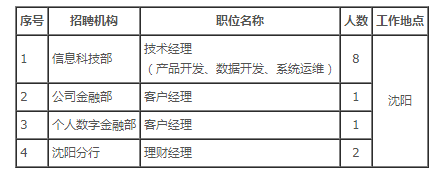 原标题:中国银行辽宁省分行2021年社会招聘公告
