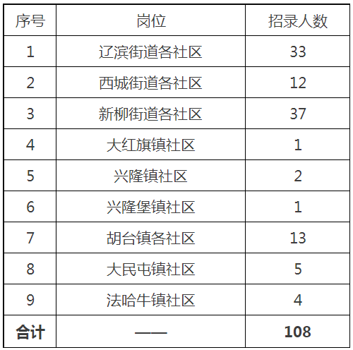 因工作需要,录用的社区工作者需服从新民区域内社区间岗位统筹安排,不服从安排的取消社区工作者聘用资格。