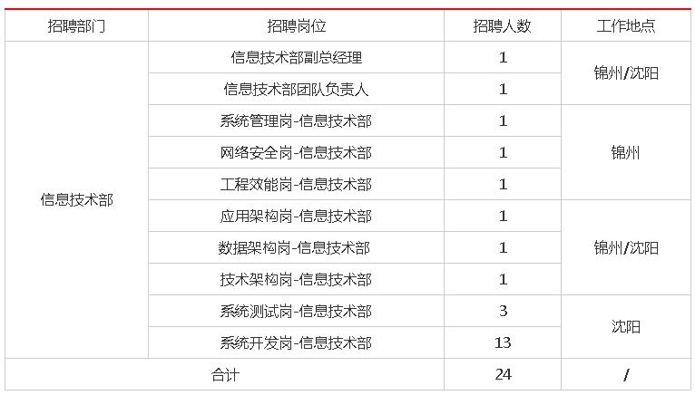 原标题:锦州银行总行信息科技部招聘启事