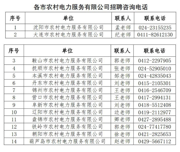 为深入贯彻落实党中央、国务院关于稳就业的重要决策部署,积极响应各级政府促进高校毕业生就业工作号召,辽宁省各市农村电力服务有限公司进一步优化招聘策略,结合自身业务发展需要,联合开展 2022年招聘工作,现将有关事项公告如下。
