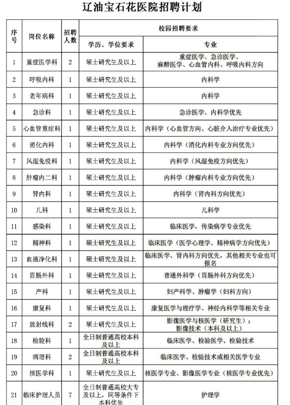 原标题:职等你来!通用技术辽油宝石花医院招聘启事