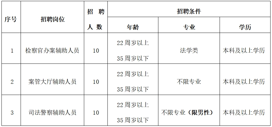 任职要求:限男性,本科及以上学历,不限专业,能够熟练掌握常用办公软件,取得法律职业资格证书A证者优先(需提供佐证材料)。