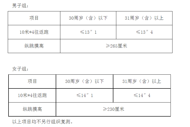 (6)体能测试为通过性方式,即有一项不合格则失去进入下一环节资格。