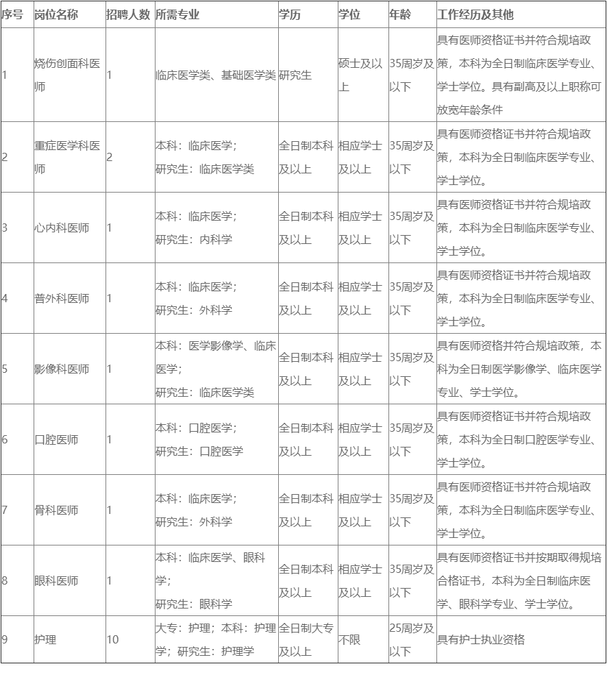 医院本次面向社会公开招聘9个岗位,共计19人: