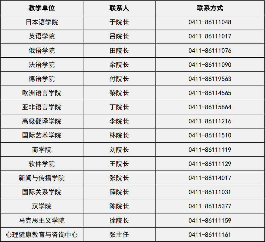 2、各教学单位联系人及联系电话