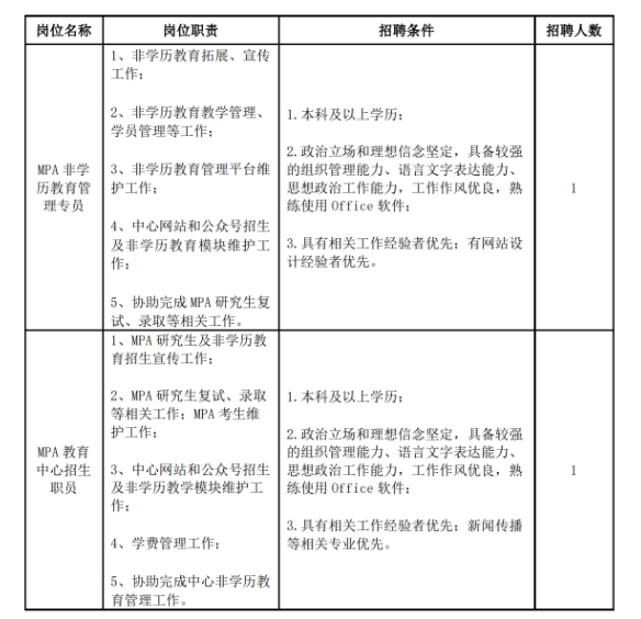 因工作需要,拟面向社会公开招聘派遣制工作人员2名(自聘),具体事宜如下: