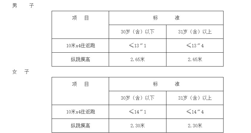 2.体能测试有一项不合格则失去进入下一环节资格。