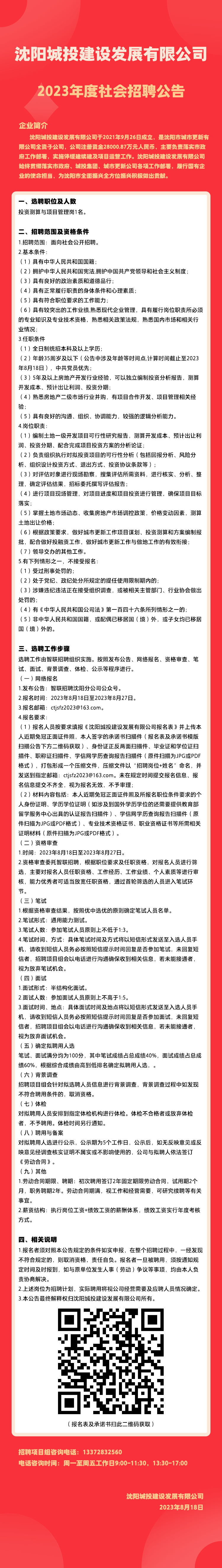 沈阳城投建设发展有限公司2023年度社会招聘公告