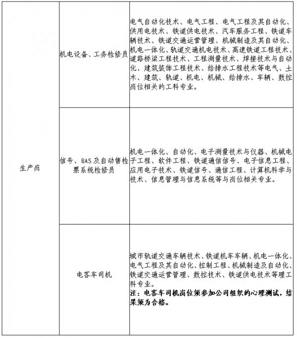 电客车司机岗位须参加公司组织的心理测试,结果须为合格。